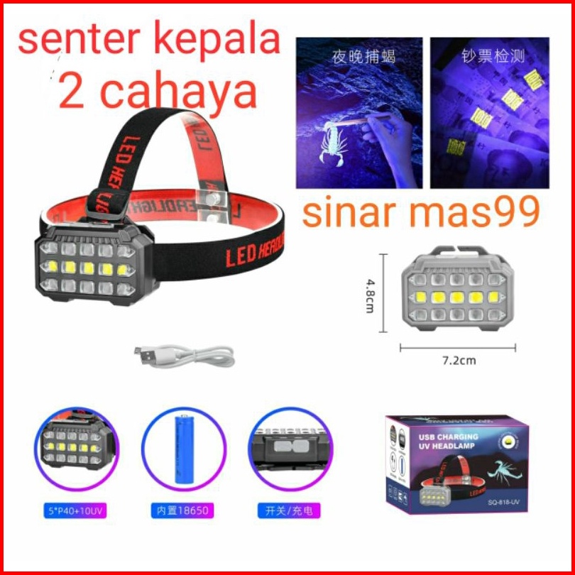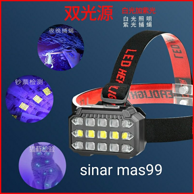 Senter Kepala Plus Led Uv Usb Charging Uv Headlamp