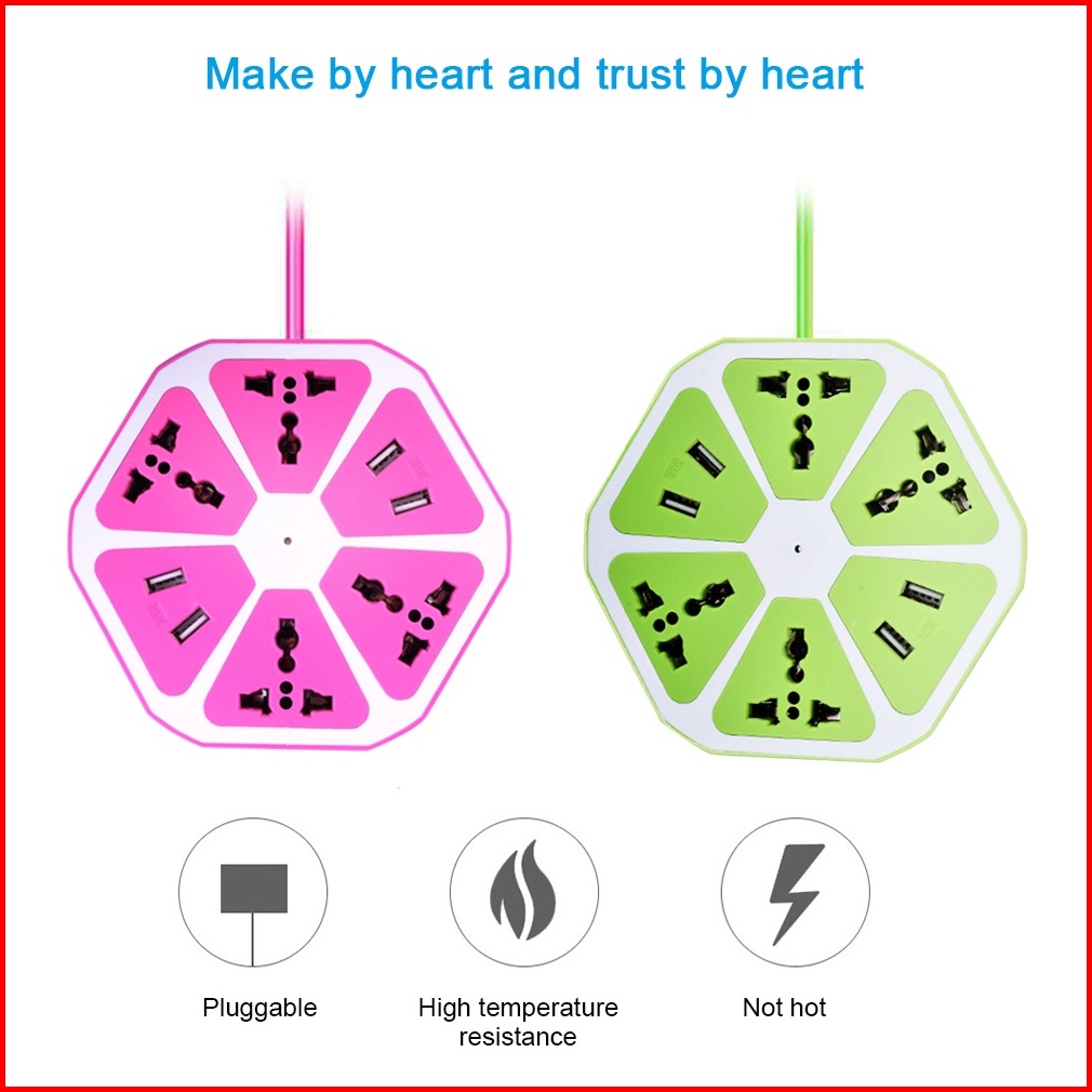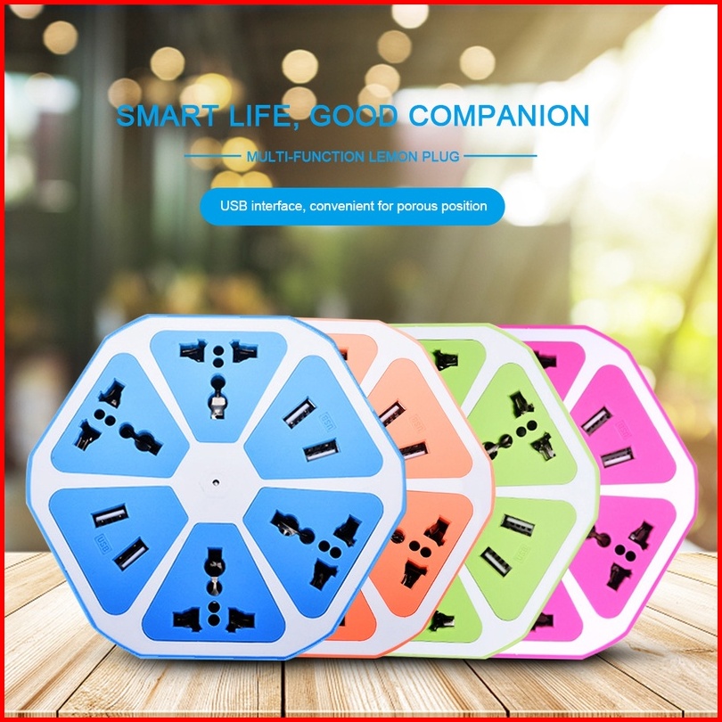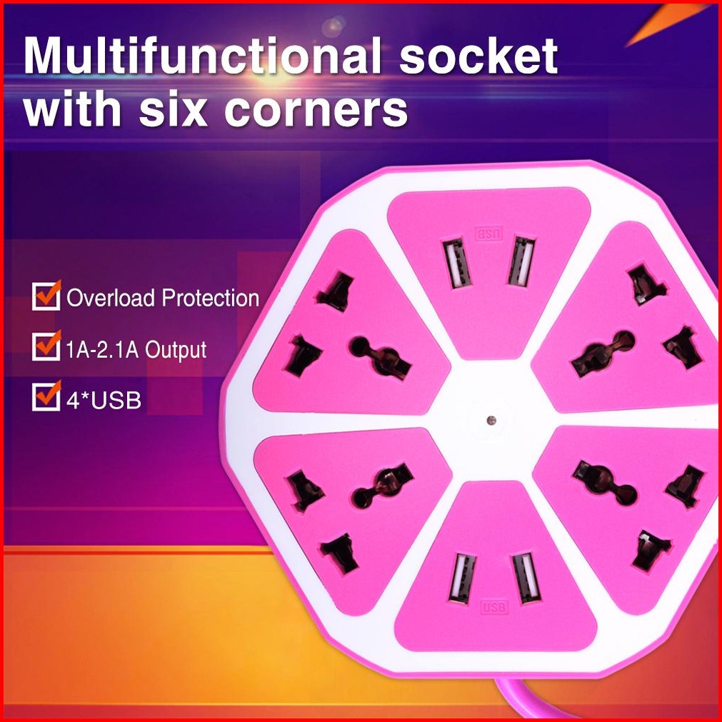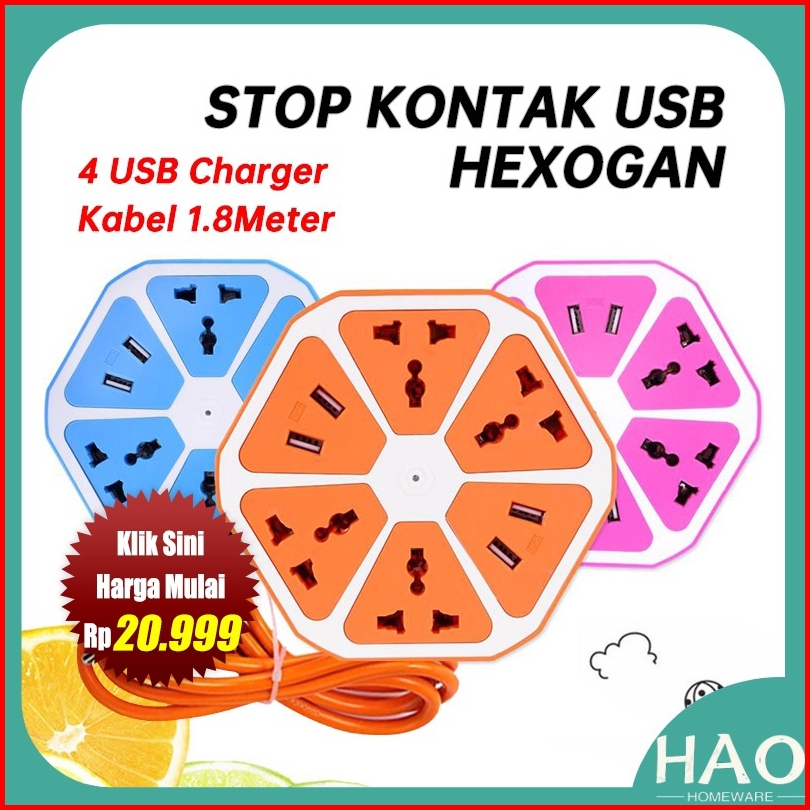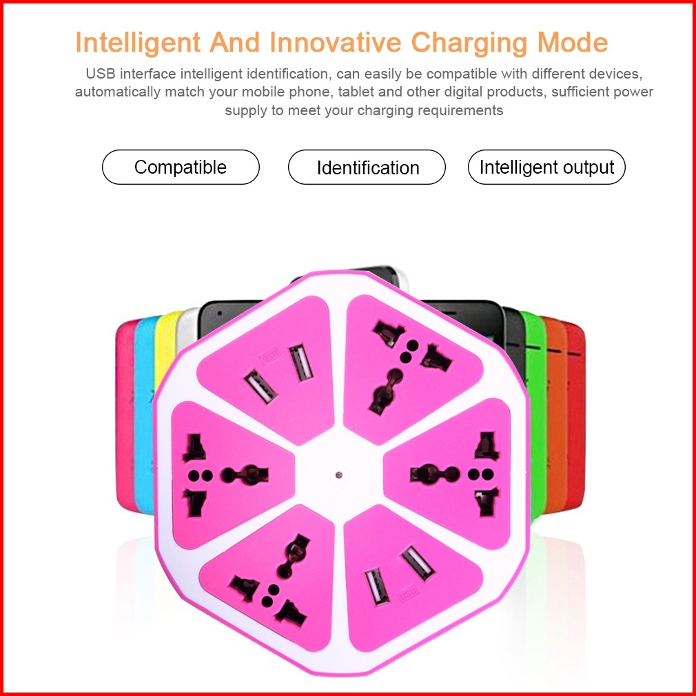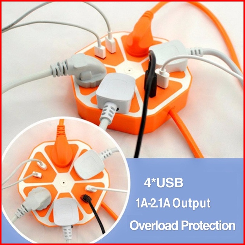 Stop Kontak Jeruk Stop Kontak Usb Hexogan Colokan Segi Enam 4lubang 1.8meter Soket 4 Usb 2 Usb Steker T Arde 3 Arah