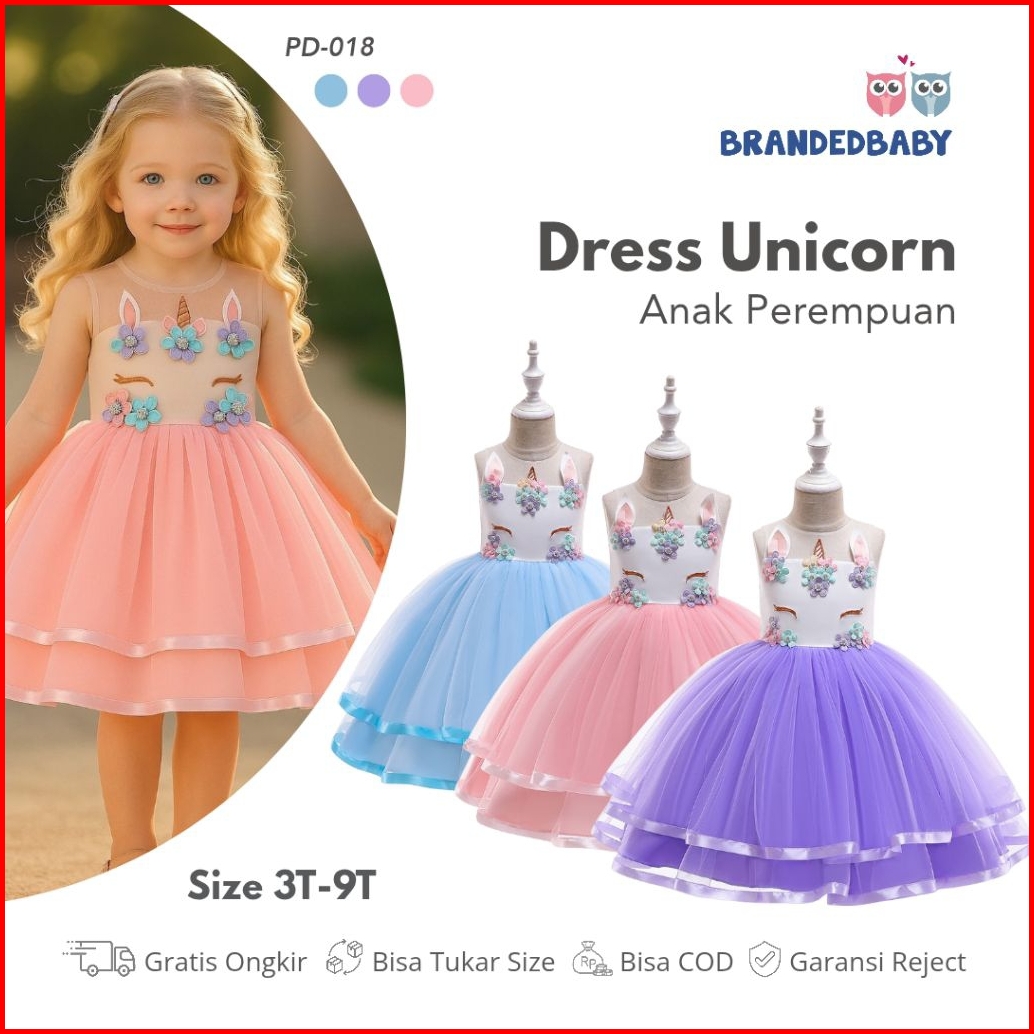 Brandedbaby 3t-9t Dress Unicorn Anak Perempuan Tutu Premium Costume Hadiah Pesta Ulang Tahun Unicorn Tutu Rainbow Premiu