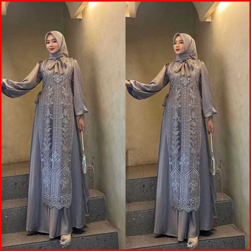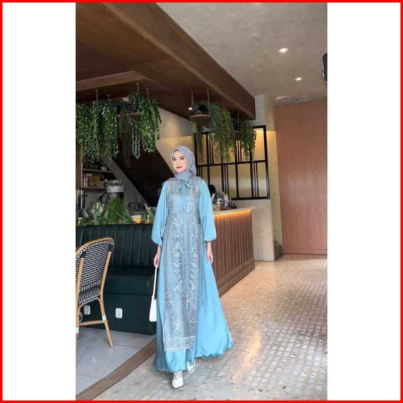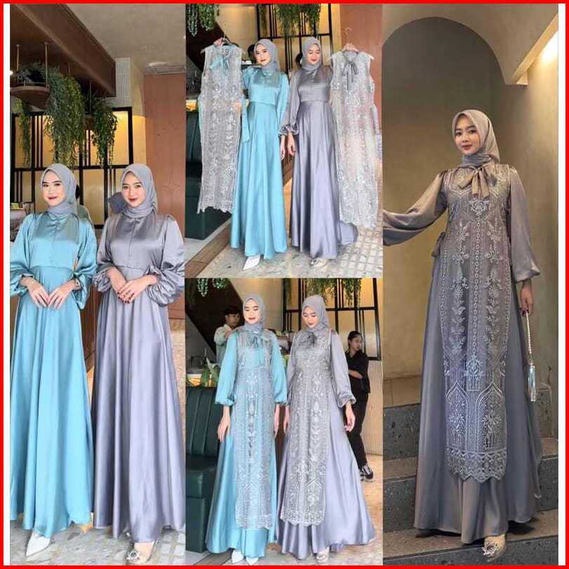 Claara Dress Set Outer Brukat Motif Etnik Gaun Kondangan Terbaru Dress Pesta Bridesmaid Seragam Keluarga Busui Friendly