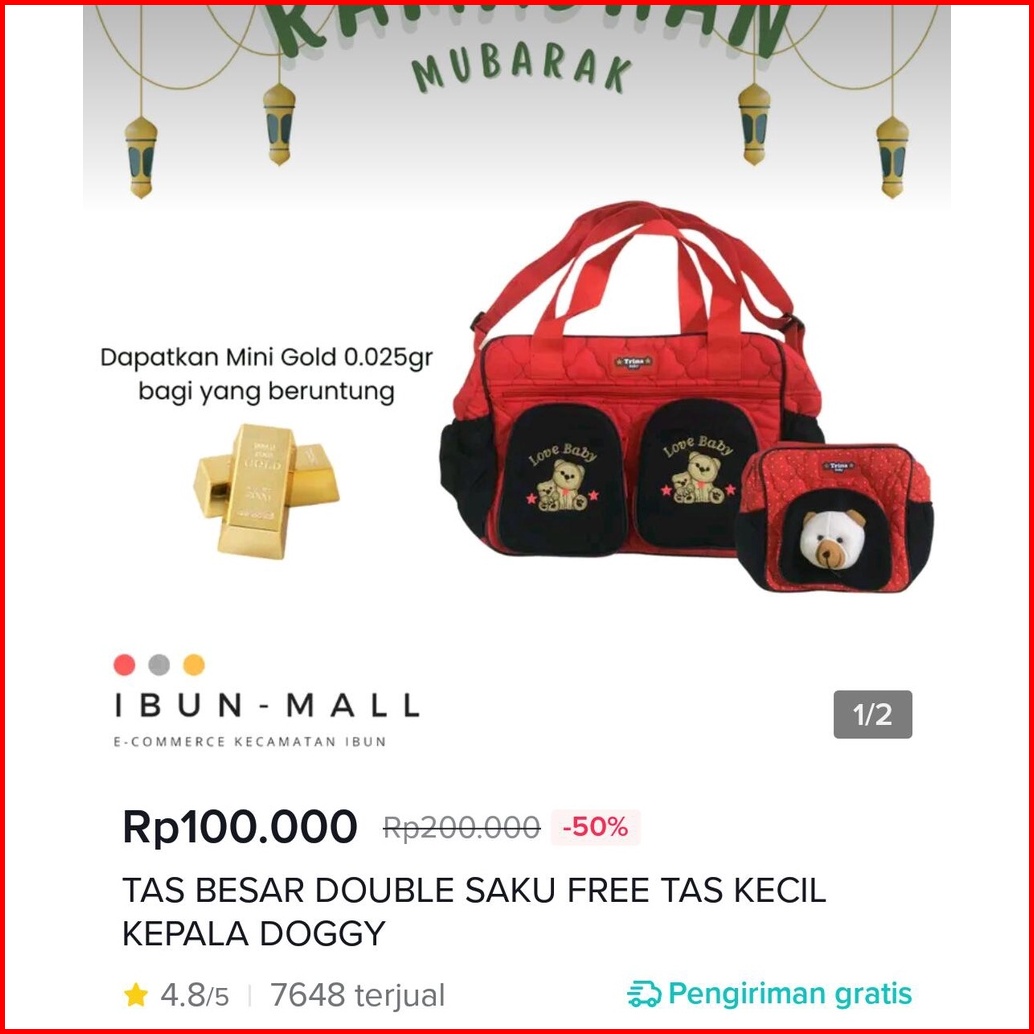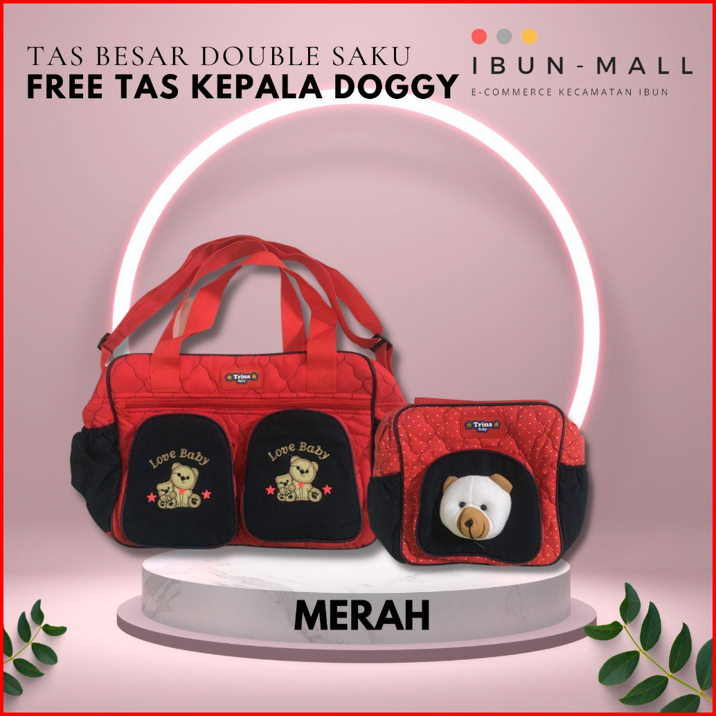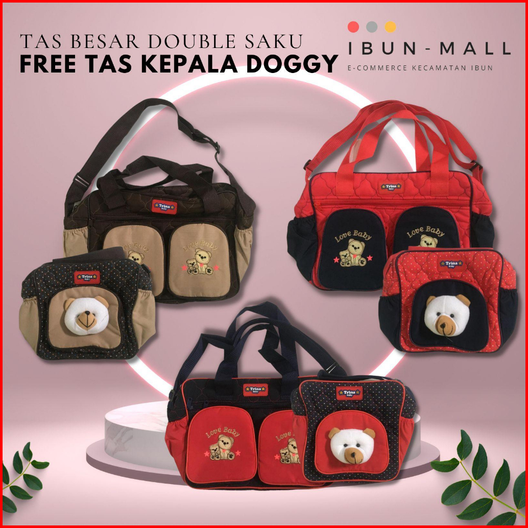 Ibun Mall Tas Besar Double Saku Free Tas Kecil Kepala Doggy