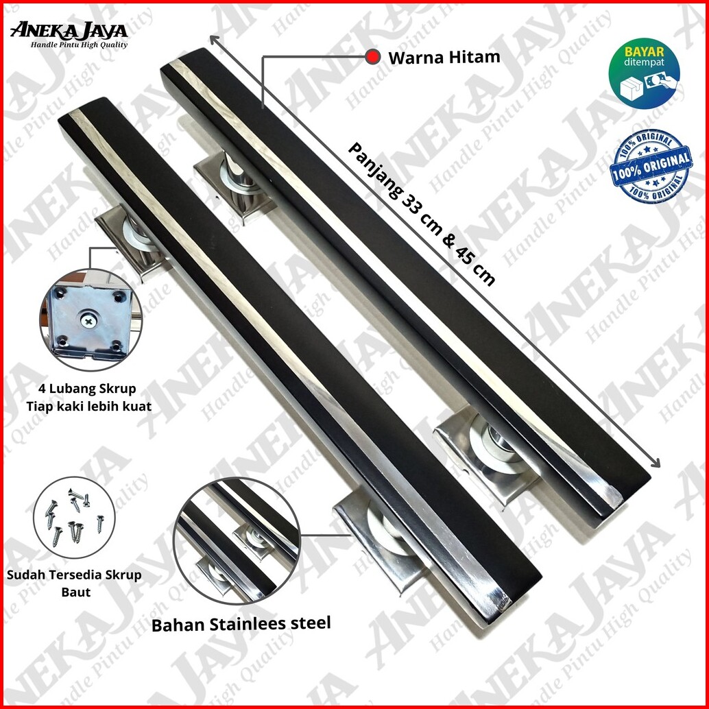 Handle Pintu Rumah 33 Cm 45 Cm Murah Terbaru Gagang Pintu Rumah Pull Stainlees Steel Warna Hitam