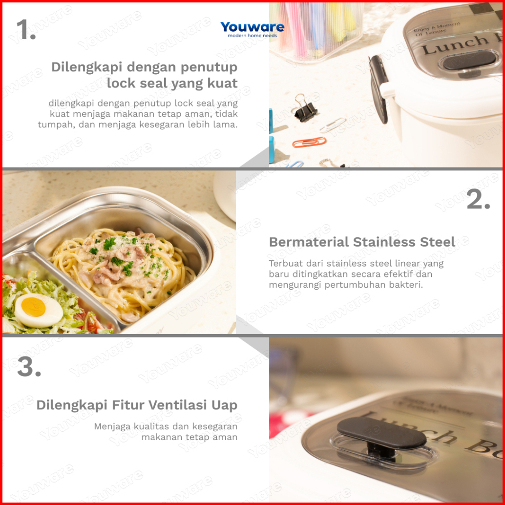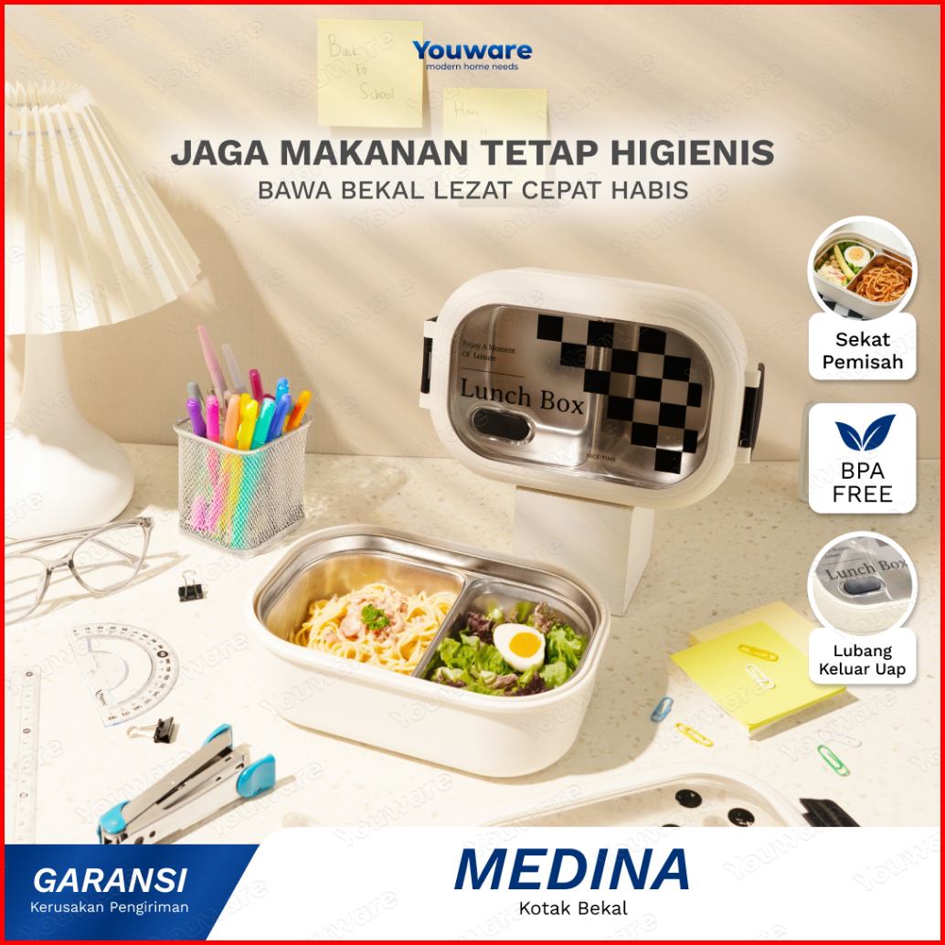 Youware - Medina Kotak Makan Stainless Steel 2 Lapis Lunch Box Aesthetic Kedap Jaga Suhu Makanan