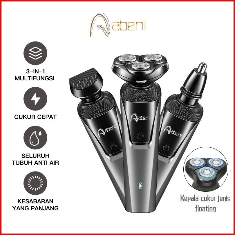 Abeni Alat Cukur Elektrik Shaver Cukur Jenggot Listrik Portable 3in1 Upgrade Kelabu Kekuatan Motor Yang Tinggi