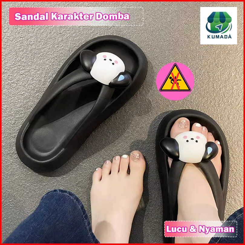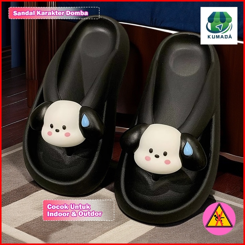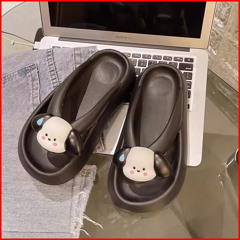 Sandal Jepit Untuk Wanita Baru Bersol Tebal Lucu Kartun Kayu Manis Anjing Klip Kaki Bagian Bawah Lembut Tidak Menggiling
