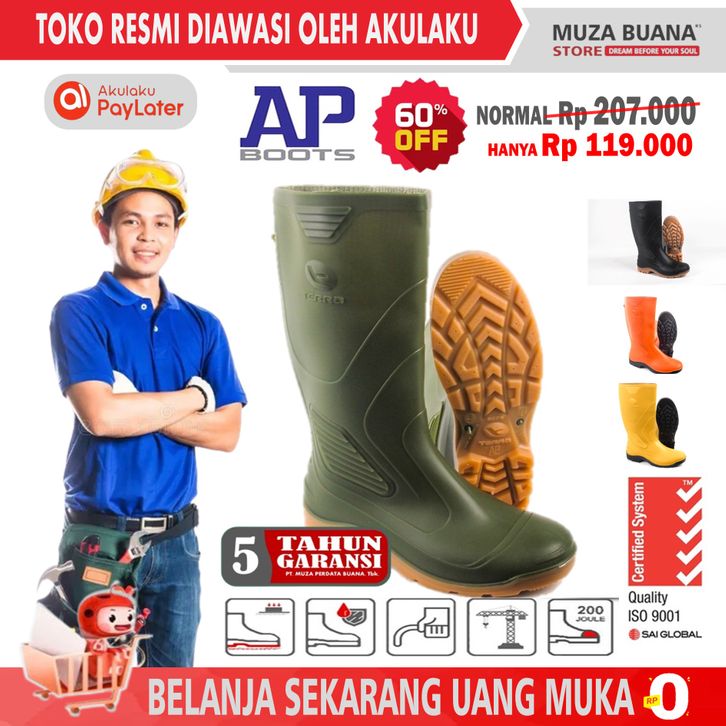 [ PRODUK ORIGINAL ] Sepatu Boot Tinggi MERK AP BOOT'S TERRA ECO 3 WARNA Kuning Hijau Orange - Anti Slip Lentur Karet