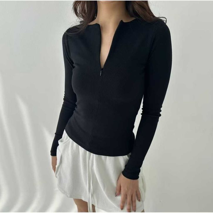 Atasan Knit Wanita Korean Top Baju Knit Wanita Lengan Panjang Basic Long Sleeve