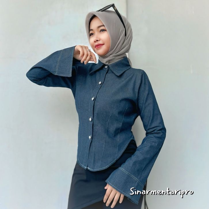 JEANS BAJU KEMEJA OVAL JEANS Kancing Bunga Baju Atasan Wanita Jeans Tebal Tangan Panjang