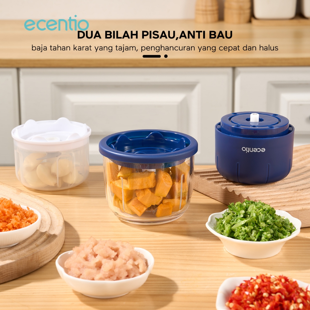 ECENTIO BLENDER FOOD PROCESSOR 350ML CHOPPER MINI BLENDER PENGHALUS PENGHANCUR DAGING BUMBU PORTABLE