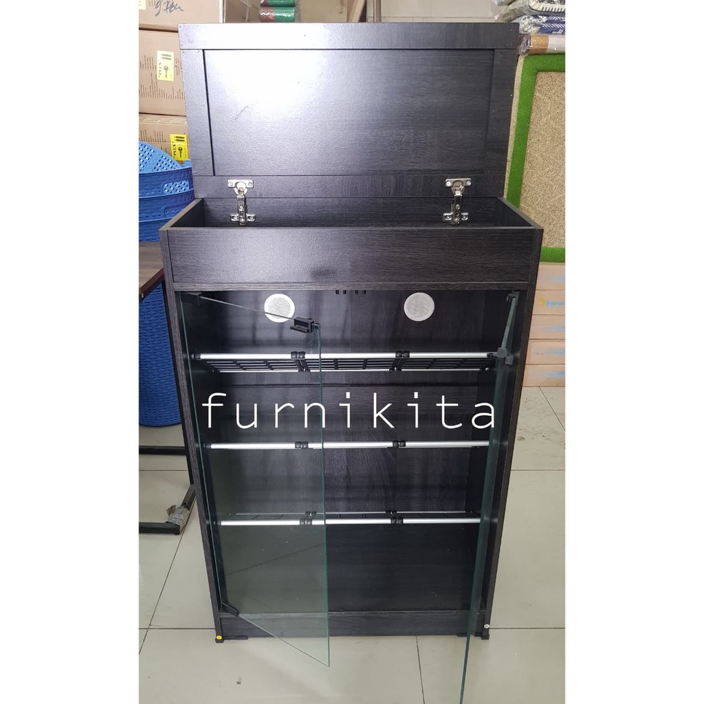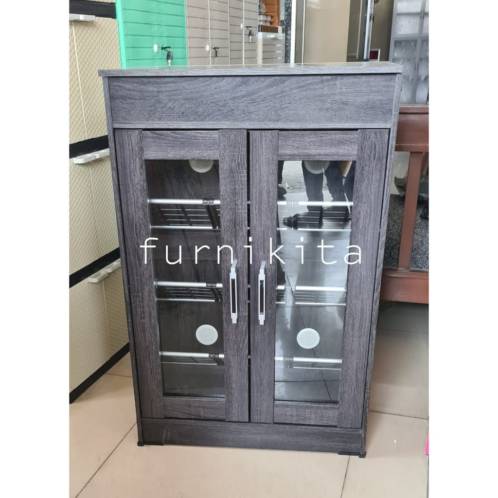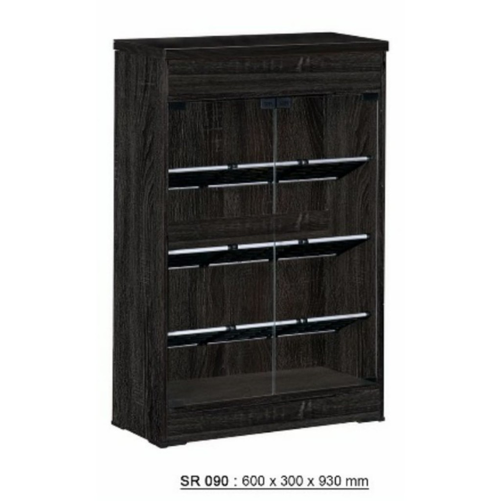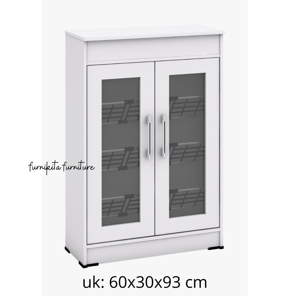LEMARI RAK SEPATU KAYU DENGAN KACA 12 PASANG DENGAN RAK SERBAGUNA