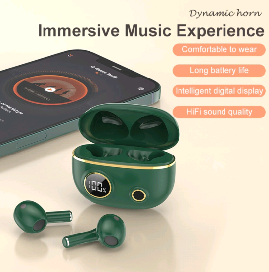 GOOJODOQ Earphone Bluetooth Wireless , IPX5 TWS Hi-Fi Stereo Earbuds, with Charging Case Bluetooth Earphone