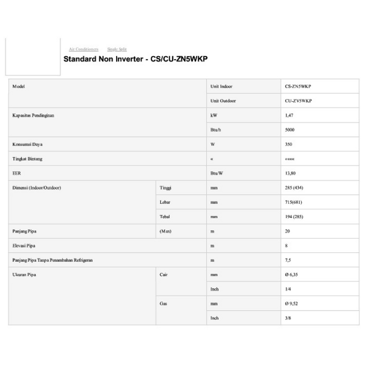 AC 1/2 pk PANASONIC ZN5WKP/ ZN5YKP