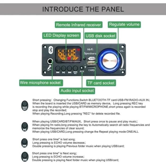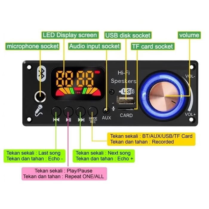 Decoder Board Modul Bluetooth MP3 Remote Control Ampli Kit Cable JQ-D161BT V1 HIFI input USB AUX Mode Record Karaoke