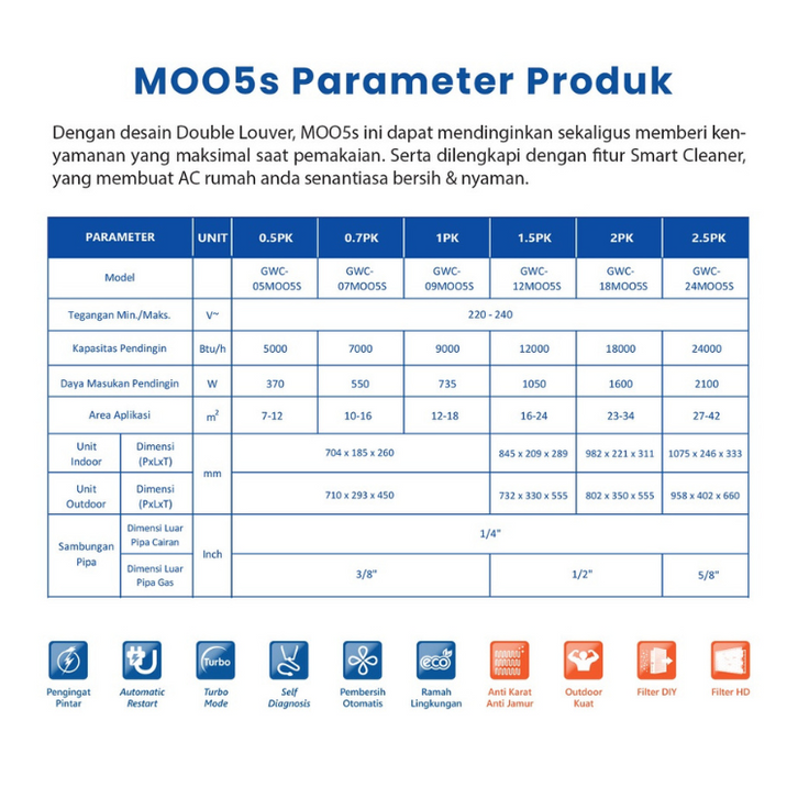 AC 1/2 PK GREE GWC-05MOO5(S) MOO5S Series MURAH