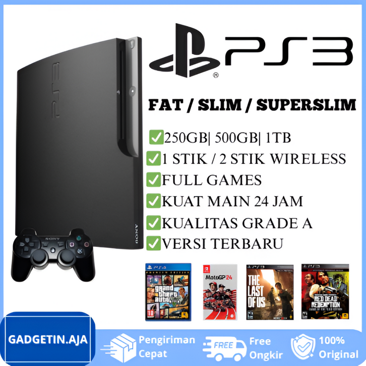 PS3 Slim Seri 25 30 Hen CFW Murni Super Slim Fat Kualitas Grade A Full Game 160GB 250GB 500GB 1TB Garansi 1 Tahun