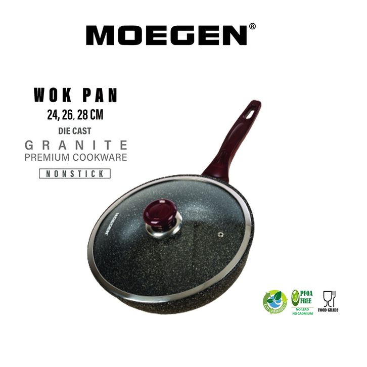 Wajan Penggorengan Moegen Wok Pan 24 26 28 cm Granite Series Wajan Anti Lengket Original Wajan Serbaguna Terlaris