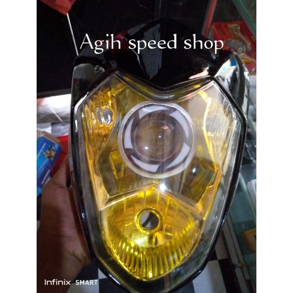 lampu depan satria fu lama old custom projie / lampu depan projie / reflektor set biled projie / lampu led motor