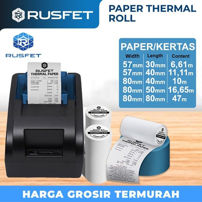 Paper Termal Kertas Thermal Printer Struk Kasir POS Barcode RUSFET - Paper 57x30mm