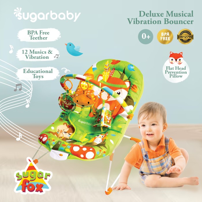 SUGAR BABY DELUXE MUSICAL VIBRATION BOUNCER 1 RECLINE / KAL STORE / KEPERLUAN PERLENGKAPAN SET IBU BAYI / SUSU POPOK SKI