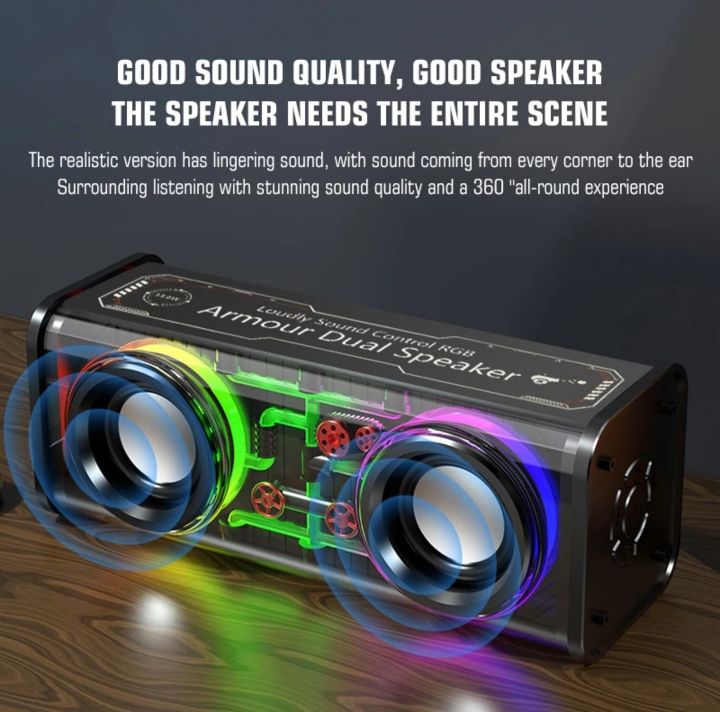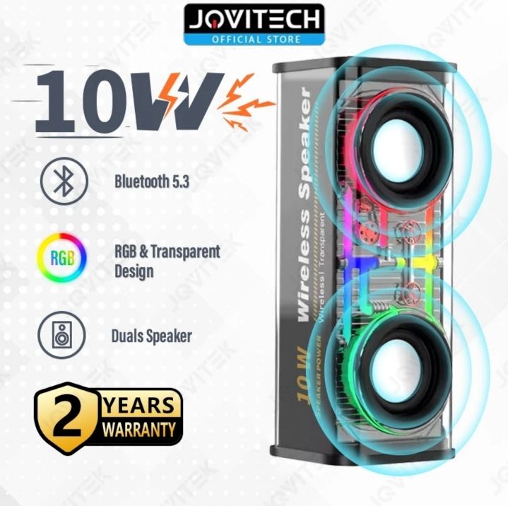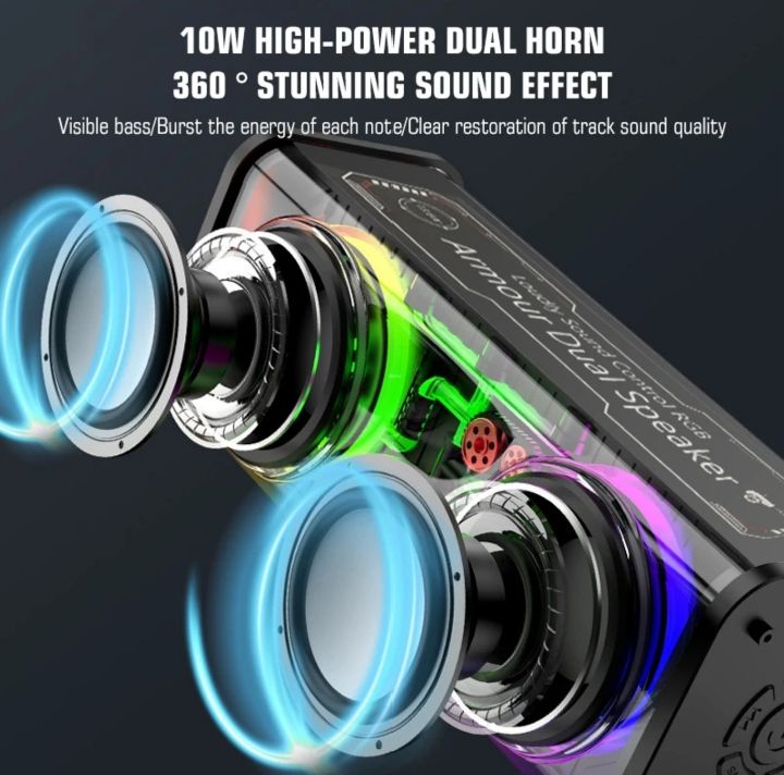 Jovitech A88 Cyberpunk Bluetooth Speaker 10W Double Subwoofer Music Speaker RGB LED Light Transparent Mech Speaker - S38