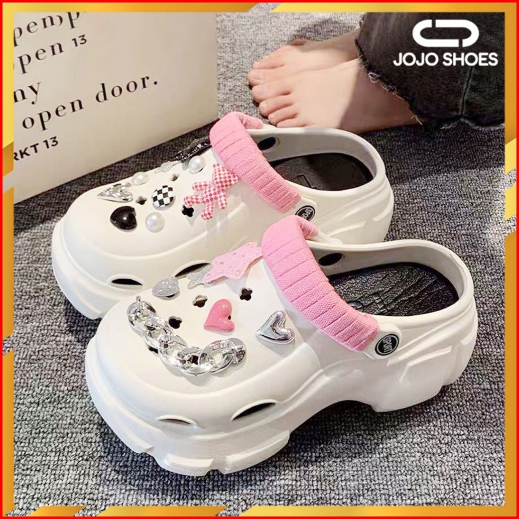 Jojo Shoes Sandal Selop Wedges Wanita Eva Rubber Dengan Jibbitz Import 8888-2-36-41