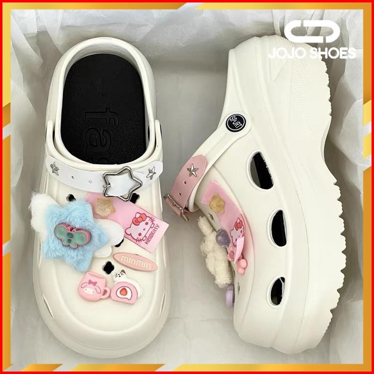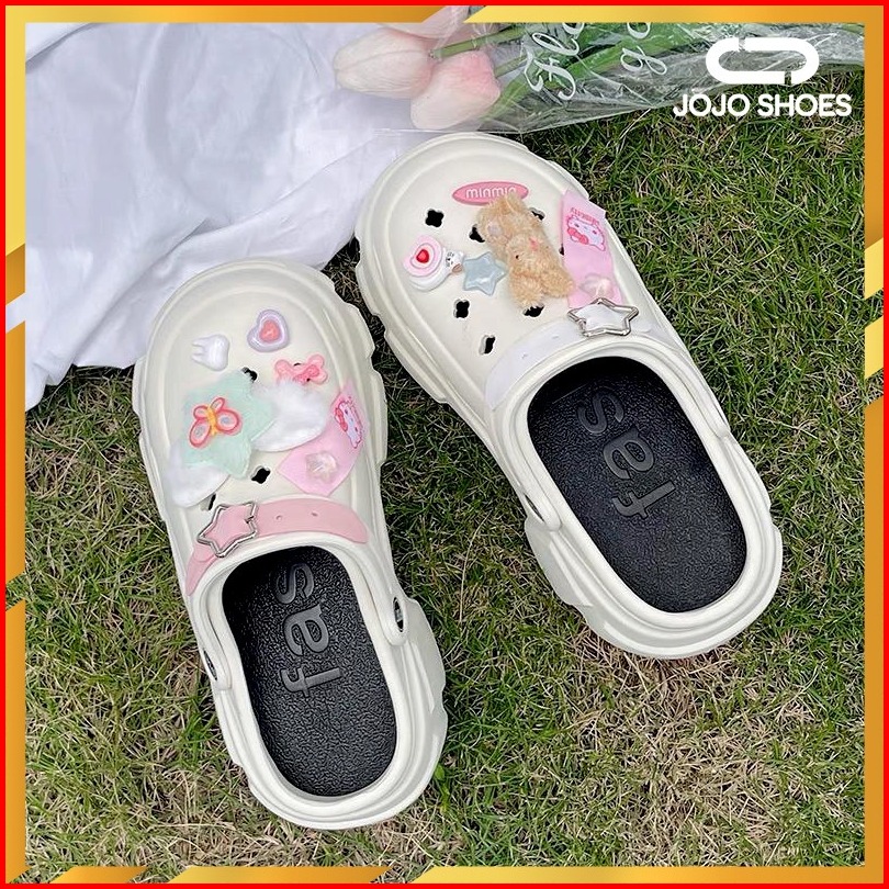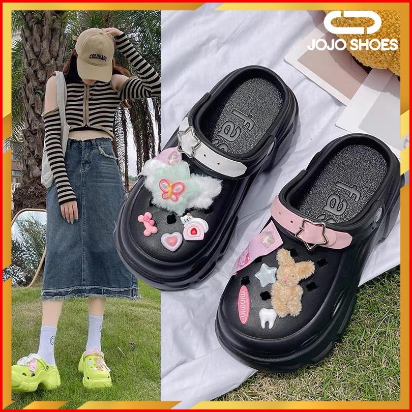 Jojo Shoes Sandal Slop Baim Eva Rubber Wanita Import Terbaru Dengan Jibbitz 3d 8888-6-36-41