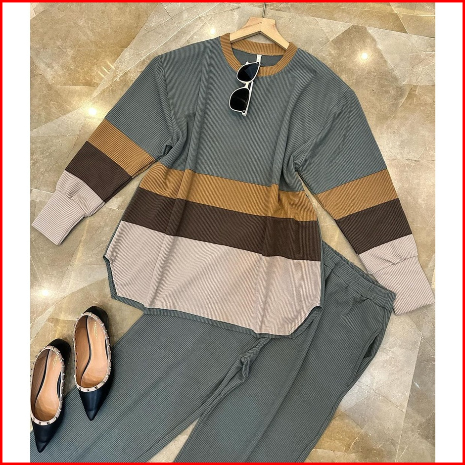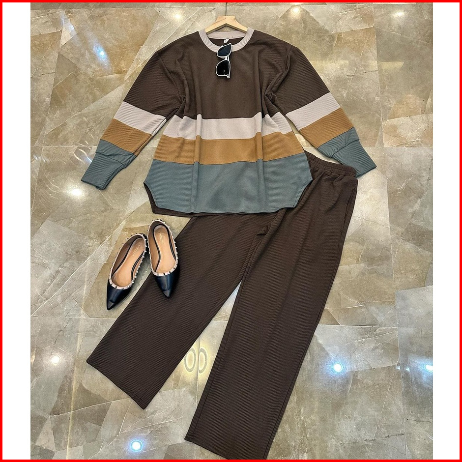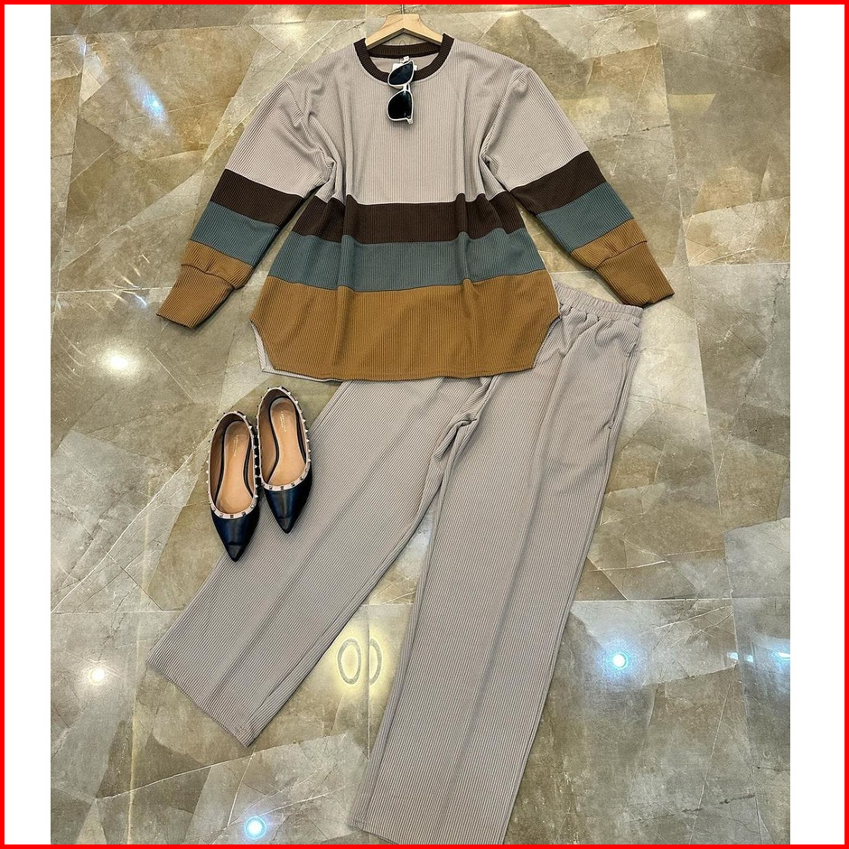 - Salsa Set Setelan Celana Wanita Muslim Matt Caramell Knit Polos Basic Premium All Size Fit To Xl Besar Casual Daily
