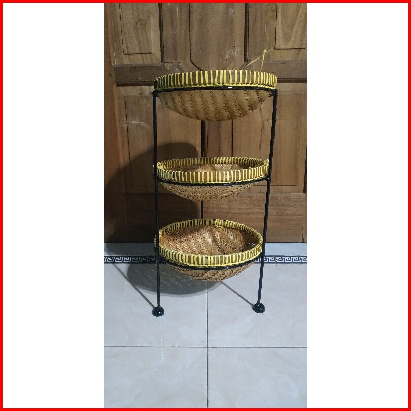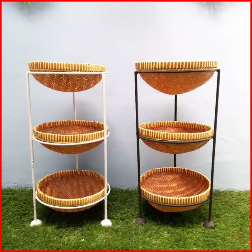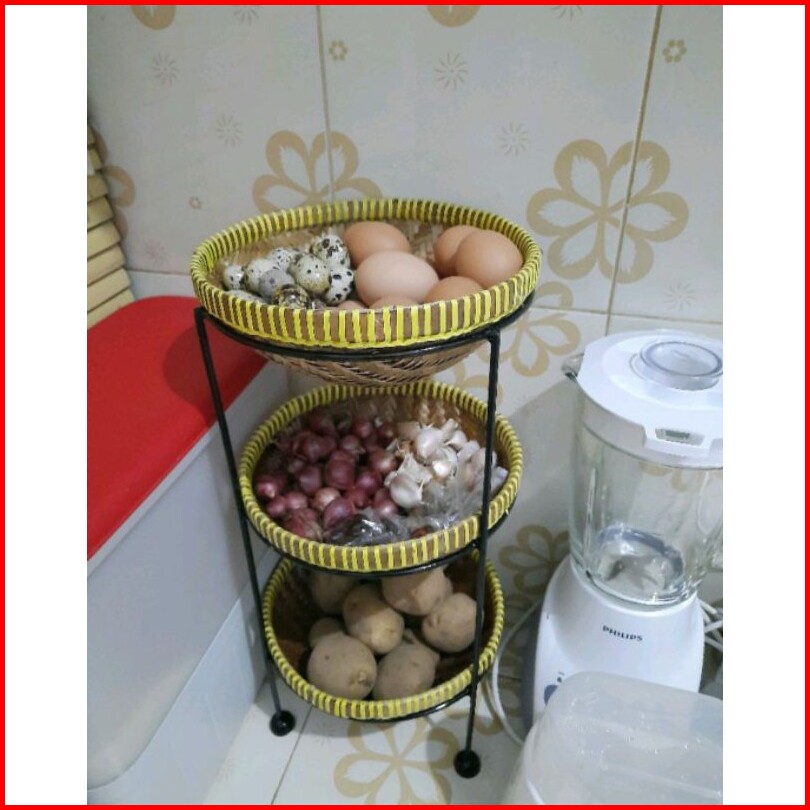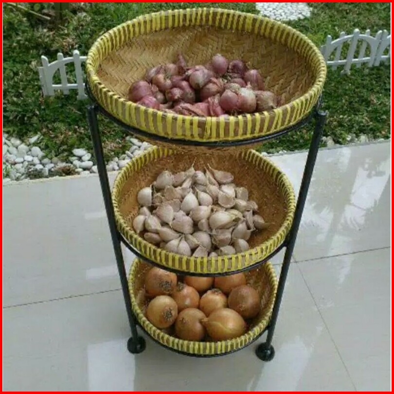 Rak Bawang Susun 3 Tanpa Tutup Bahan Besi Bambu