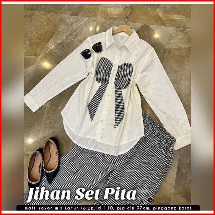 - Jihan Set Pita Setelan Celana Wanita Dewasa Matt Rayon Premium All Size Fit To Xl Besar Ootd Stelan 2in1 Casual Daily