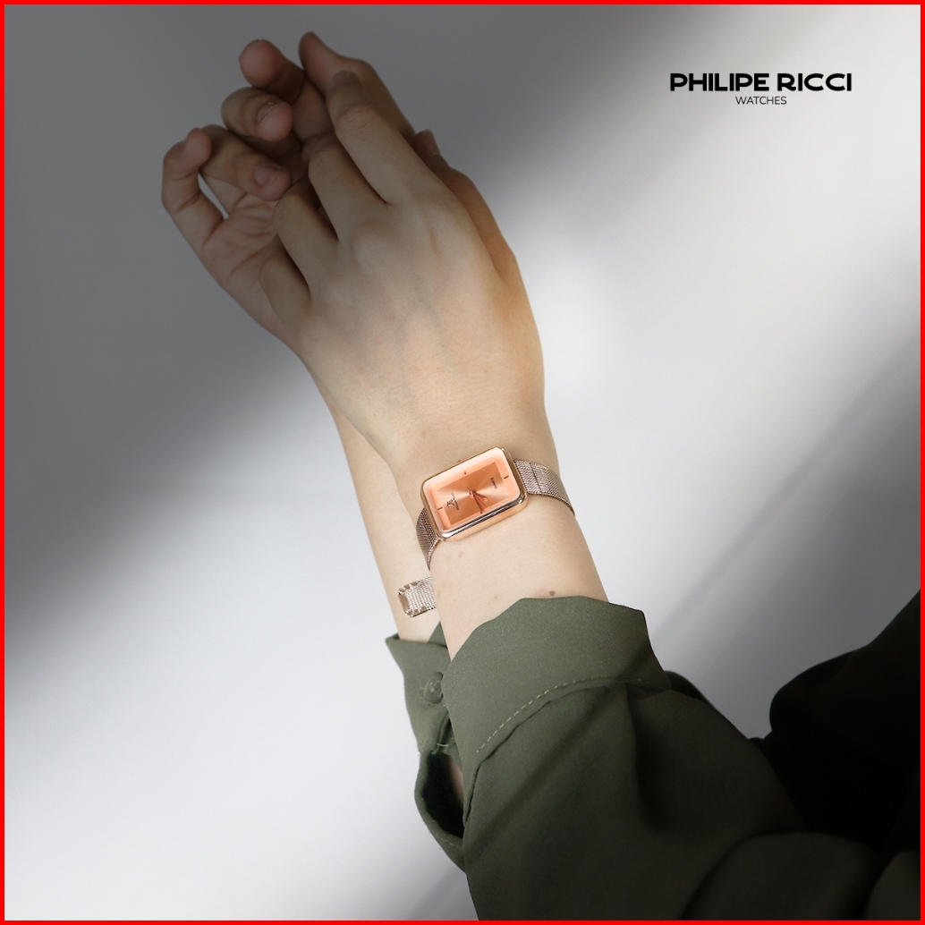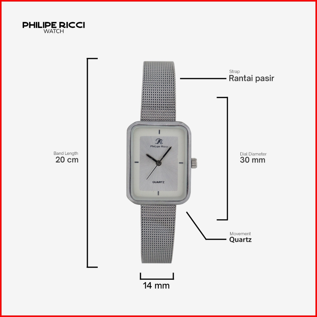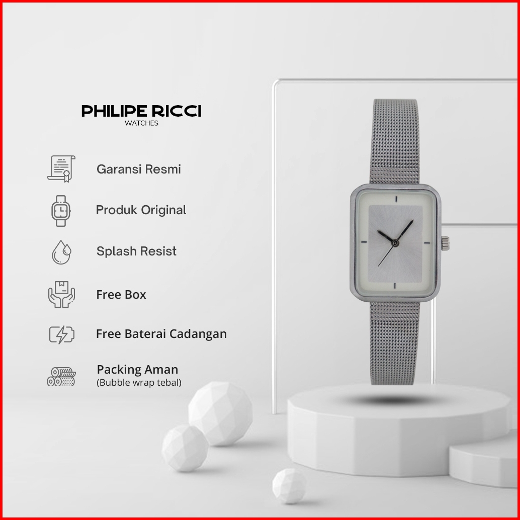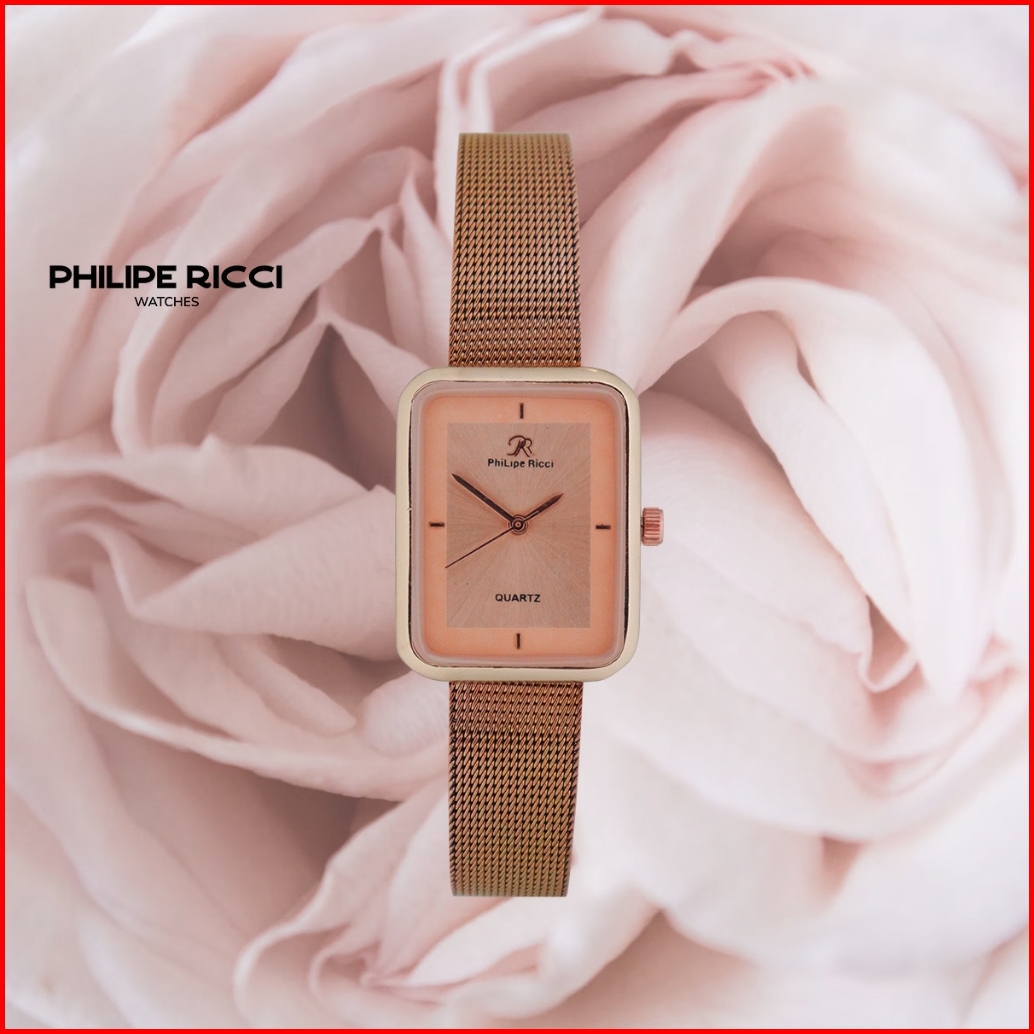 Philipe Ricci Jam Tangan Wanita Kecil Analog Strap Tali Rantai Pasir Diameter Kotak Desain Mewah Model Elegan Mini Terba