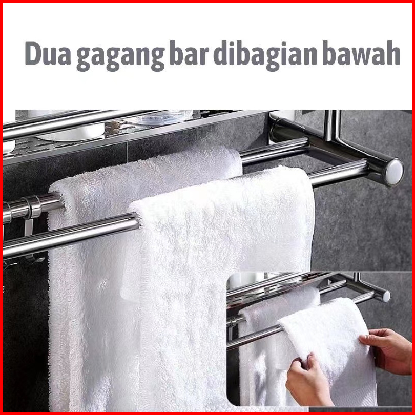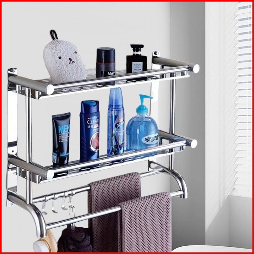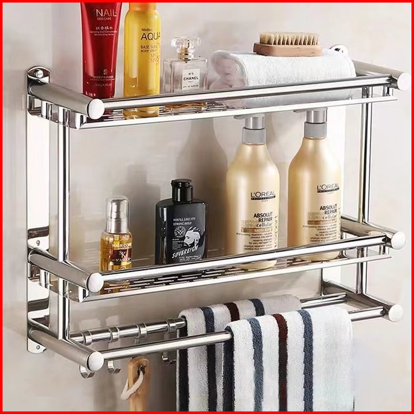 Stainless Rak Kamar Mandi Dinding Rak Sudut Rak Susun 1-3 Lapisan 40cm Rak Handuk Rak