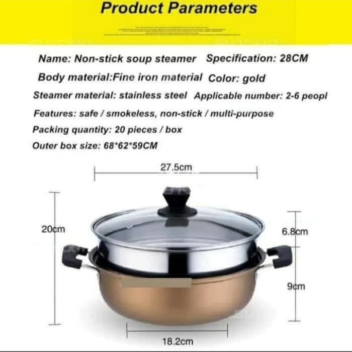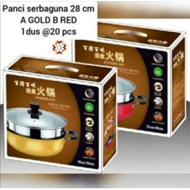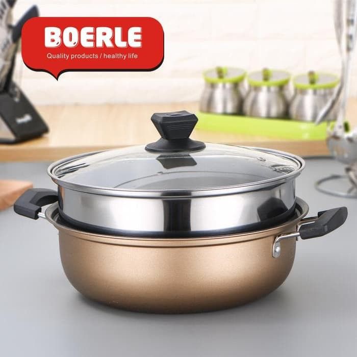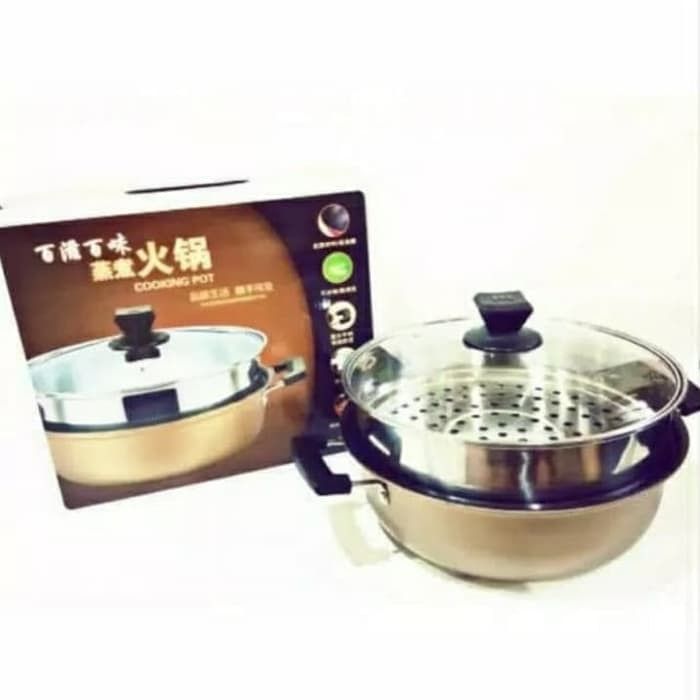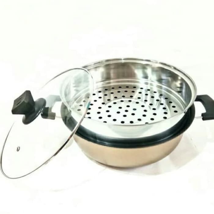 Panci Kukus dua Susun Steamer Pot Stainless Stell Tutup Kaca Diameter 28cm Multifungsi Merebus Mengukus Makanan premium