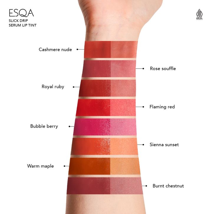 Cashmere Nude, Rose Souffle, Royal Ruby, Flaming Red , Bubble Berry , Sienna Sunset, Warm Maple , Burnt Chestnut