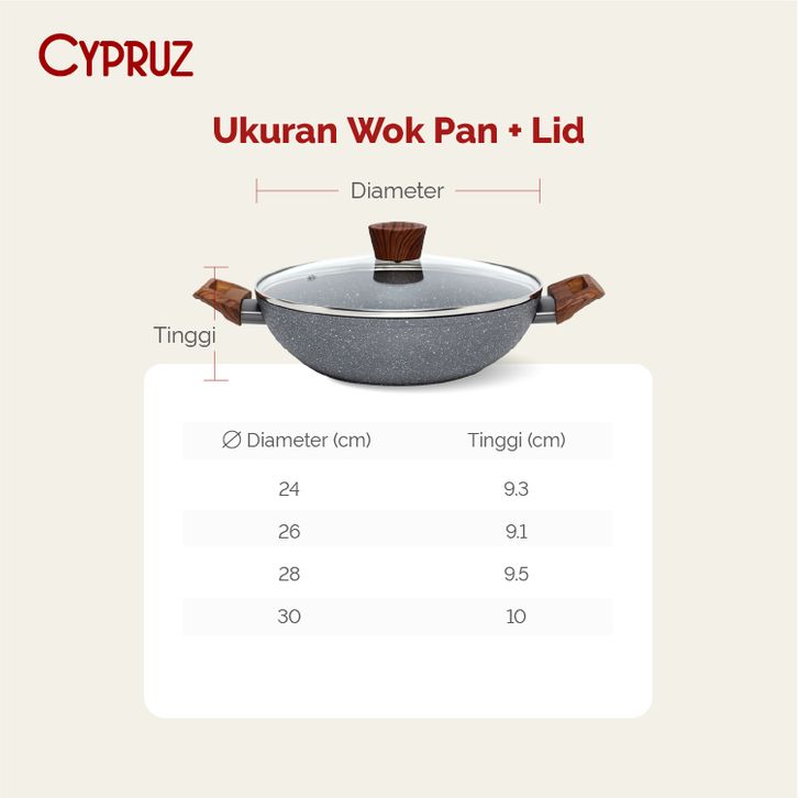 Wajan Kuali /Cypruz Wajan Kuali Anti Lengket Tebal Grey Marble Series Dengan Tutup 30 cm/ Wajan Kuali murah