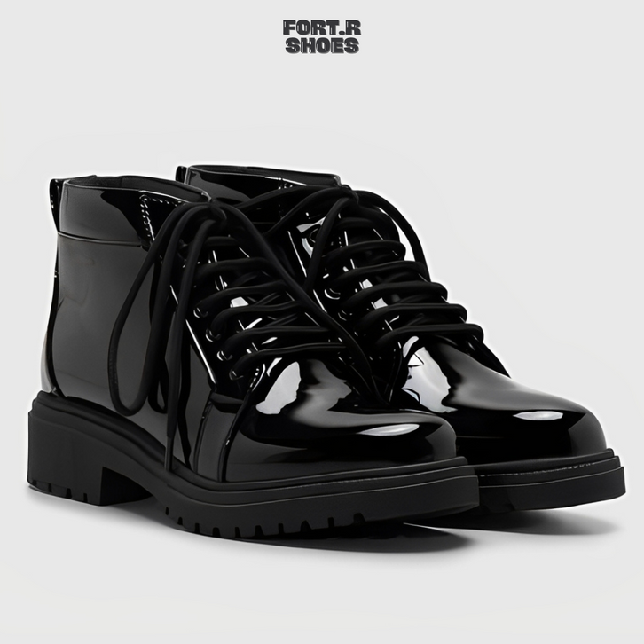 SEPATU BOOTS WANITA FULL BLACK ADORABLEPROJECTS BUTTERPOP BOOTS PATENT BLACK SEPATU WANITA