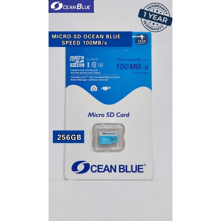 Memory Card Hp Micro SD Oceanblue Class 10 U3 Kapasitas 128 256 512 GB 100MB/s TF MMC Kamera CCTV