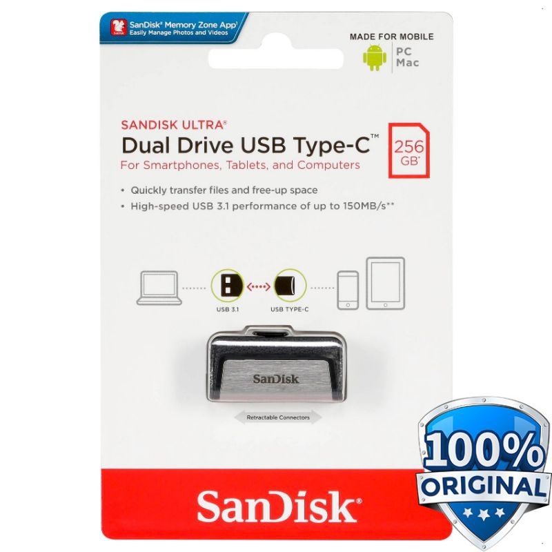 flashdisk sandisk dual drive otg type c 256 gb 150mb/s