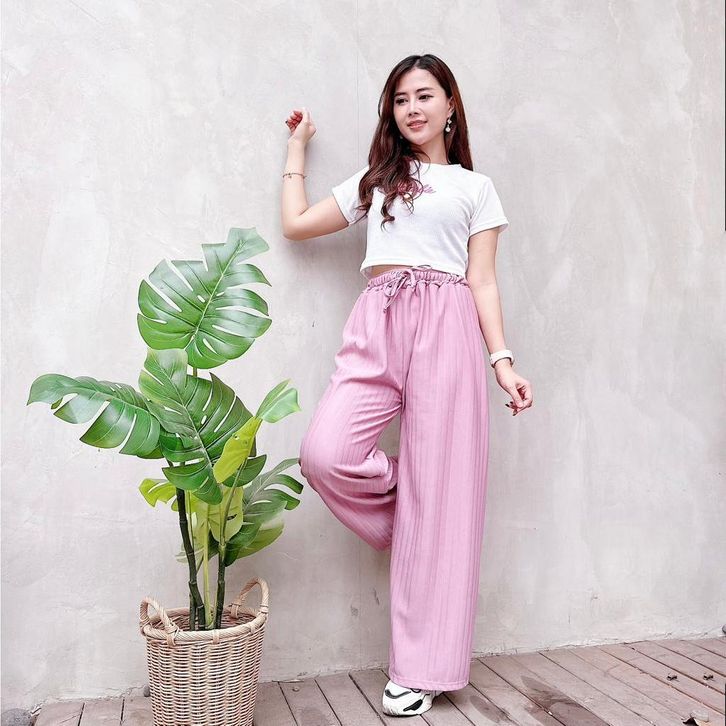 Celana kece Hornet Knit Wanita Dewasa Celana Kulot Panjang cewe Kulot Pants Korea Style Kekinian Bahan Rib Premium Tebal