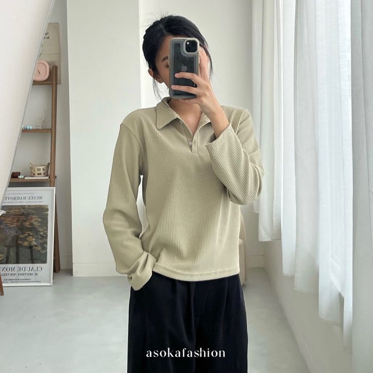 baju Polo Knite Shirt cewe Dewasa Atasan Baju Kerah Perempuan Tshirt Knit Cewek Korean Fashion Style