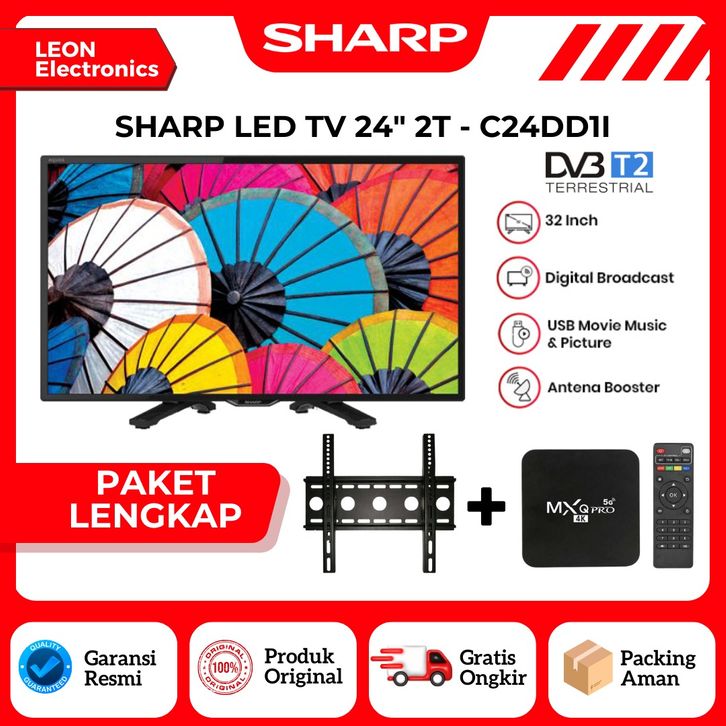 FREE ONGKIR TV SHARP 24 Inch LED Digital Smart Android TV Box Ram 2GB Rom 16GB C24DD1i Garansi Resmi