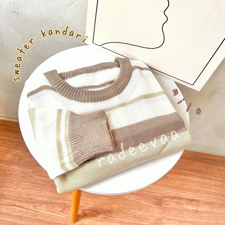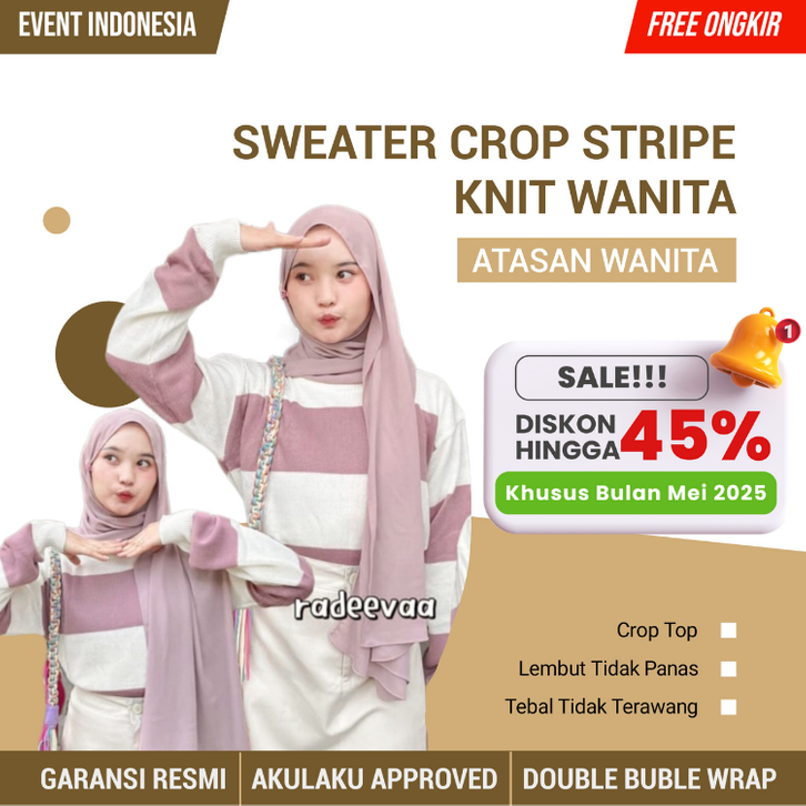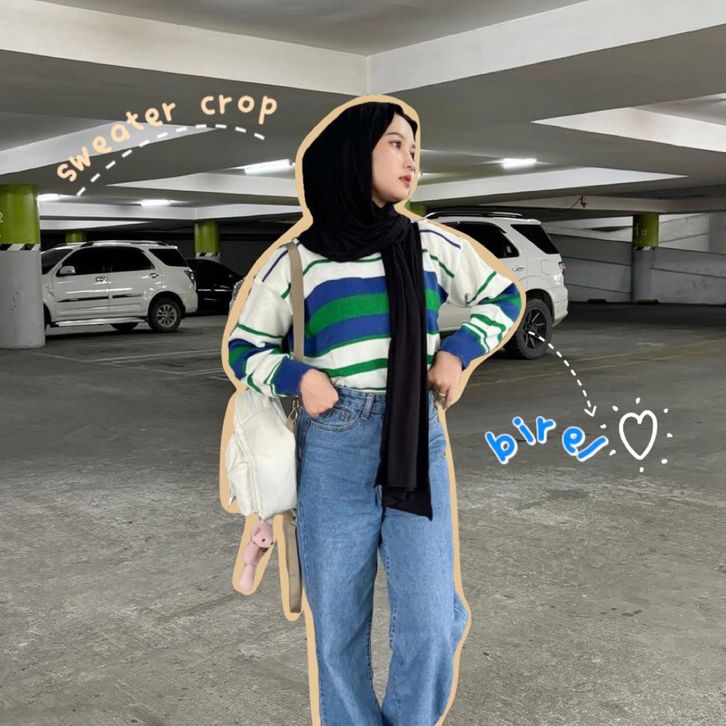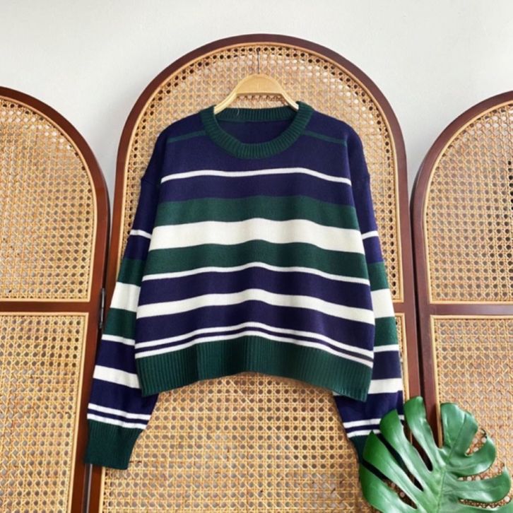 Sweater cewe Crop Knit Atasan Rajut Perempuan Motif Garis Oversize Knitwear Cewek Korean Style Allsize Fit To XL