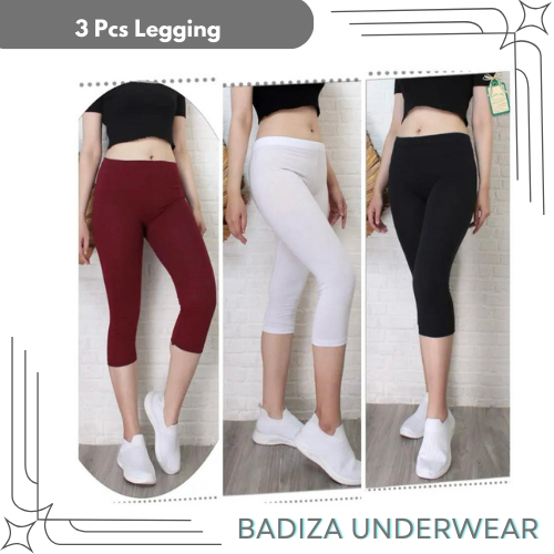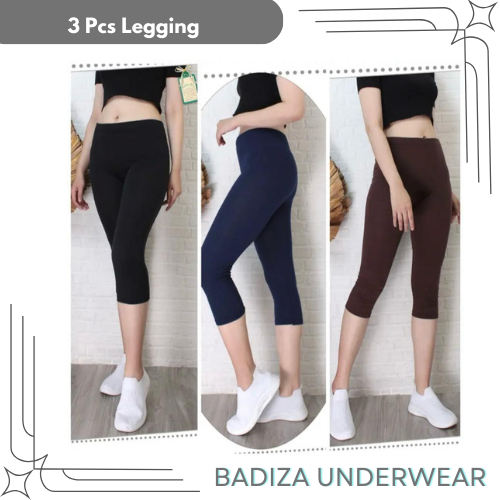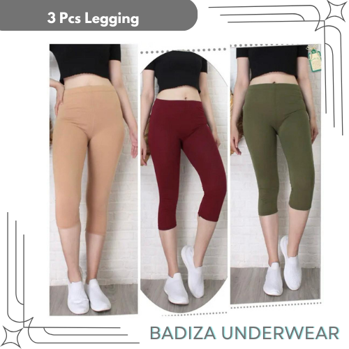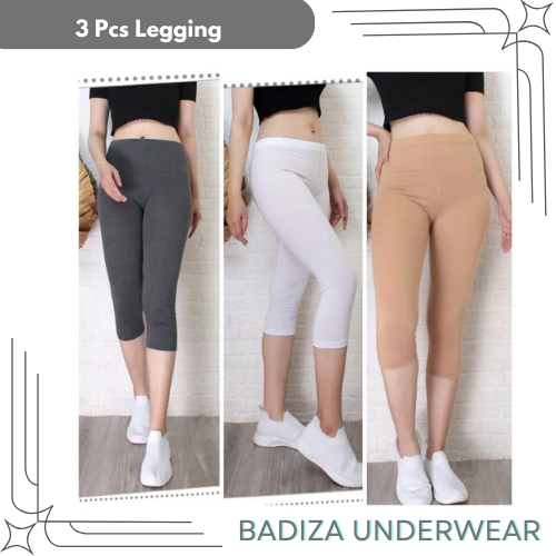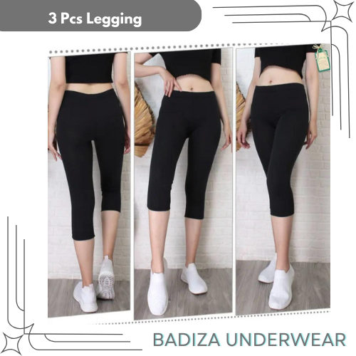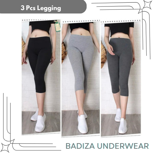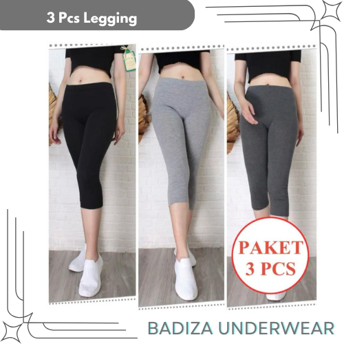 3 Pcs Legging Lejing 3/4 Wanita Dewasa Bahan Kaos Tebal Jumbo