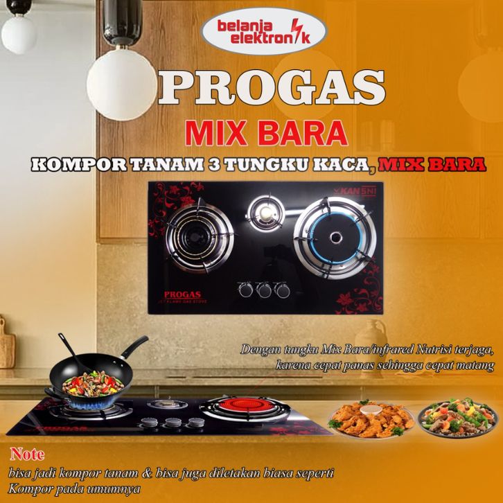 KOMPOR GAS TANAM 3 TUNGKU KACA PROGAS