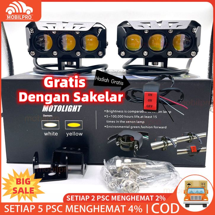Lampu Tembak LED Laser D2 D3 Transformer 3 Mata SQL 3 Mata Lensa PutihKuning Lampu Sorot Motor Mobil Terlaris