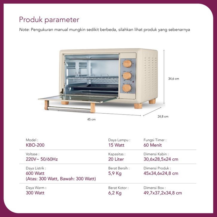 Best Seller Hot Promo Oven Listrik Low Watt Kirin KBO 200 20L Modern Terbaik Murah Berkualitas