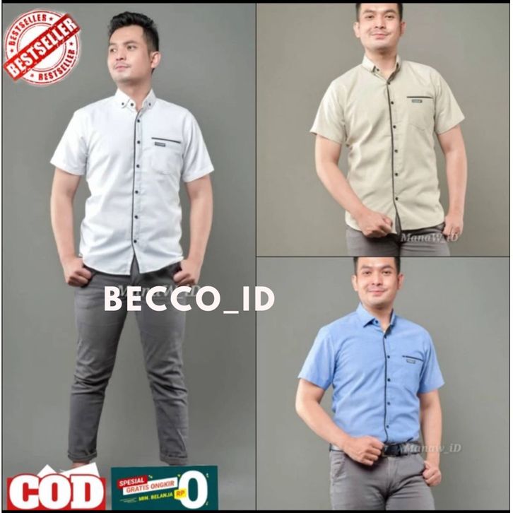 kemeja polos lengan pendek pria - kemeja polos motif list lengan pendek pria - kemeja kantor polos lengan pendek pria