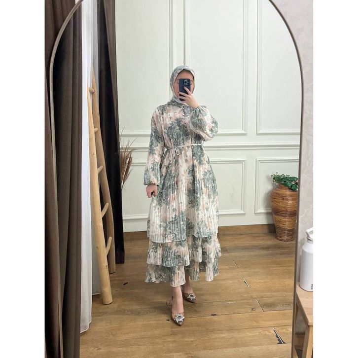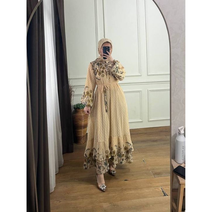 Zoraya Maxy Set Hijab | Gamis Plisket Motif / Gamis Meijiewang / Dress Plisket Mewah Jumbo / Gamis Ceruty / Gamis Viral