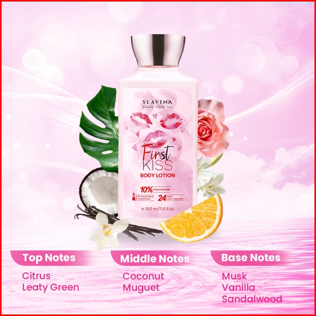 Body Lotion Nagita Slavina First Kiss Niacinamide Glutathione Mencerahkan Kulit Wangi Tahan Lama