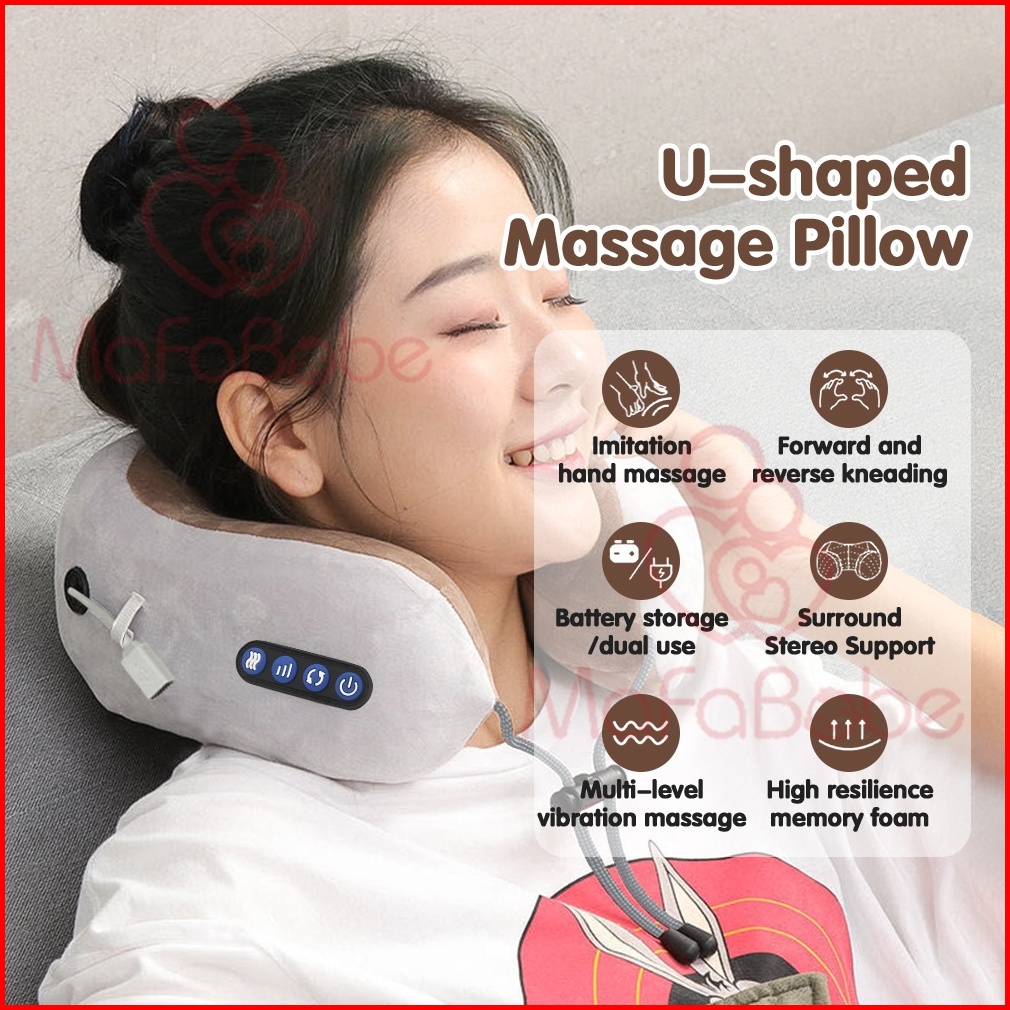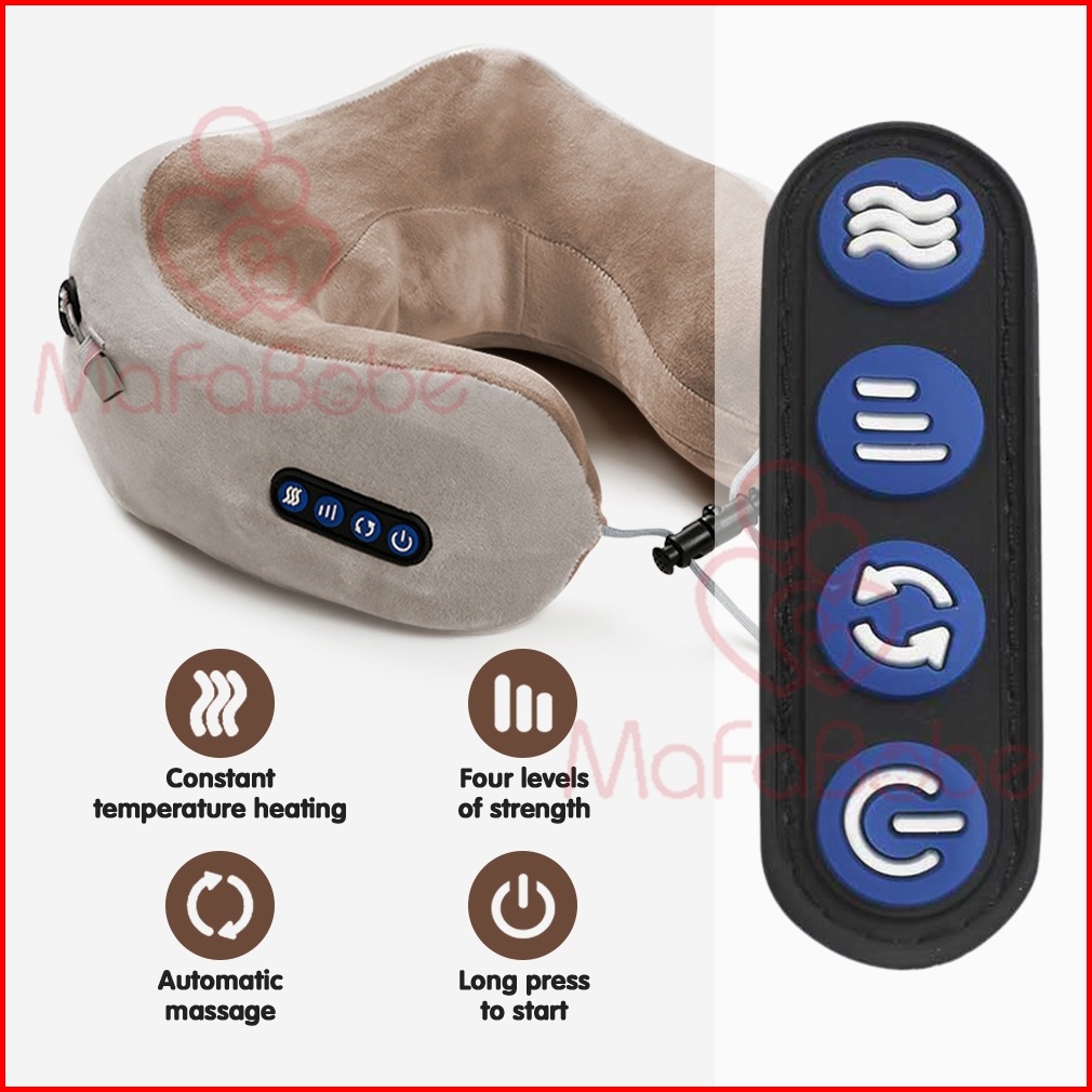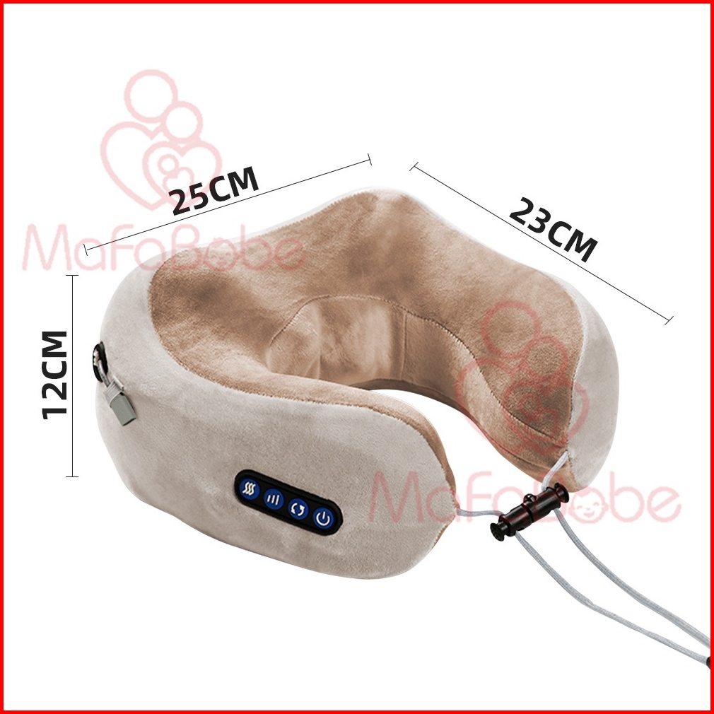 Mafababe Bantal Pijat Bentuk U 4 Tombol Pemijat Bantal Portabel Bahu Leher Pemanas Elektrik Dapat Diisi Ulang