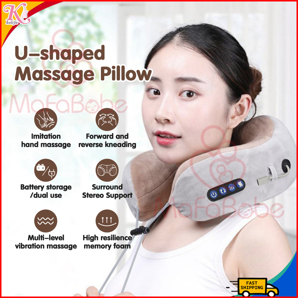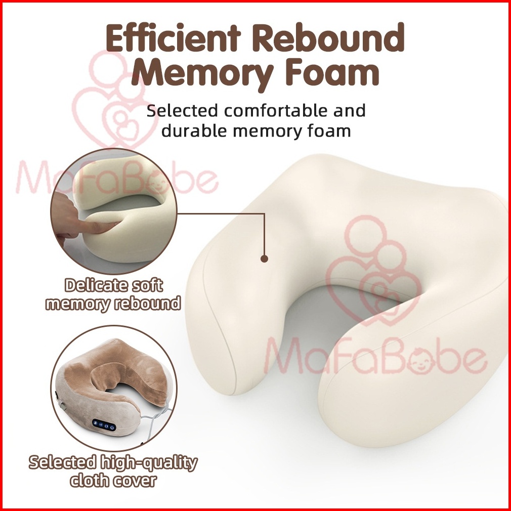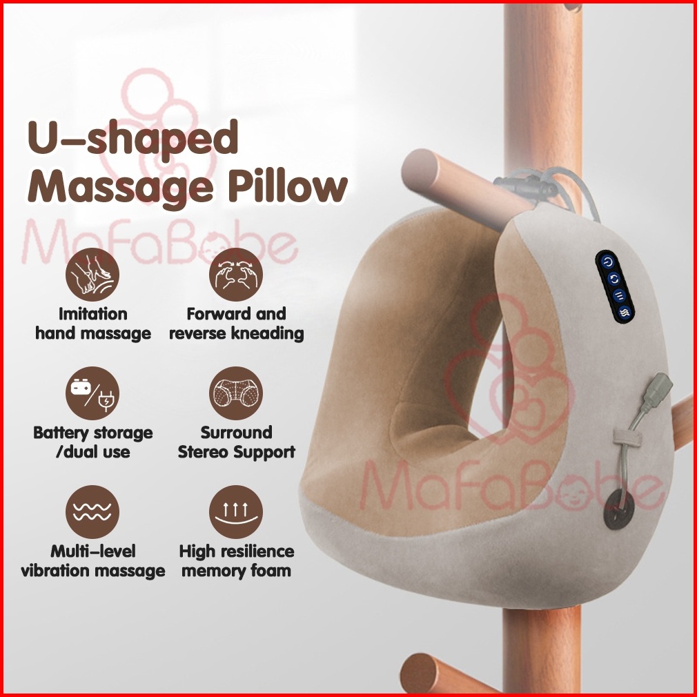 Mafababe Bantal Pijat Bentuk U 4 Tombol Pemijat Bantal Portabel Bahu Leher Pemanas Elektrik Dapat Diisi Ulang